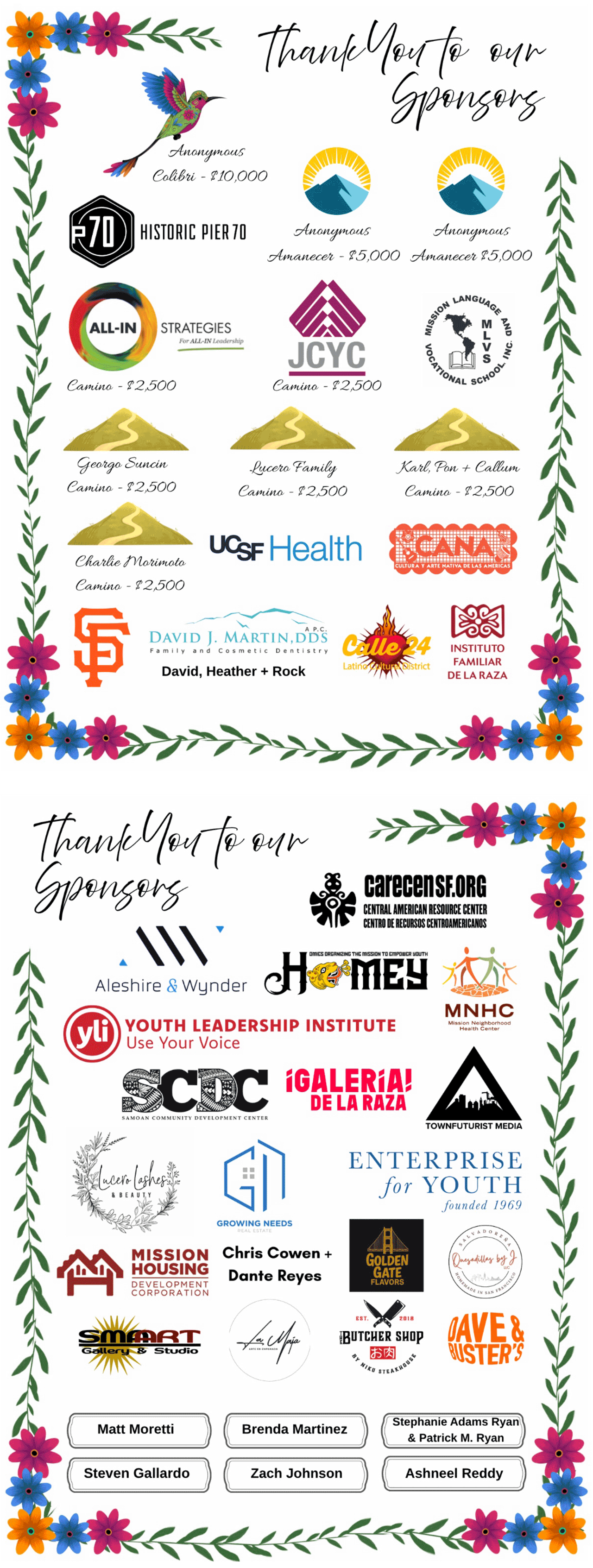 The evening begins with a blessing by our Danzantes and a networking reception, followed by youth performances, storytelling, dining, a silent auction, Lotería, and dancing.