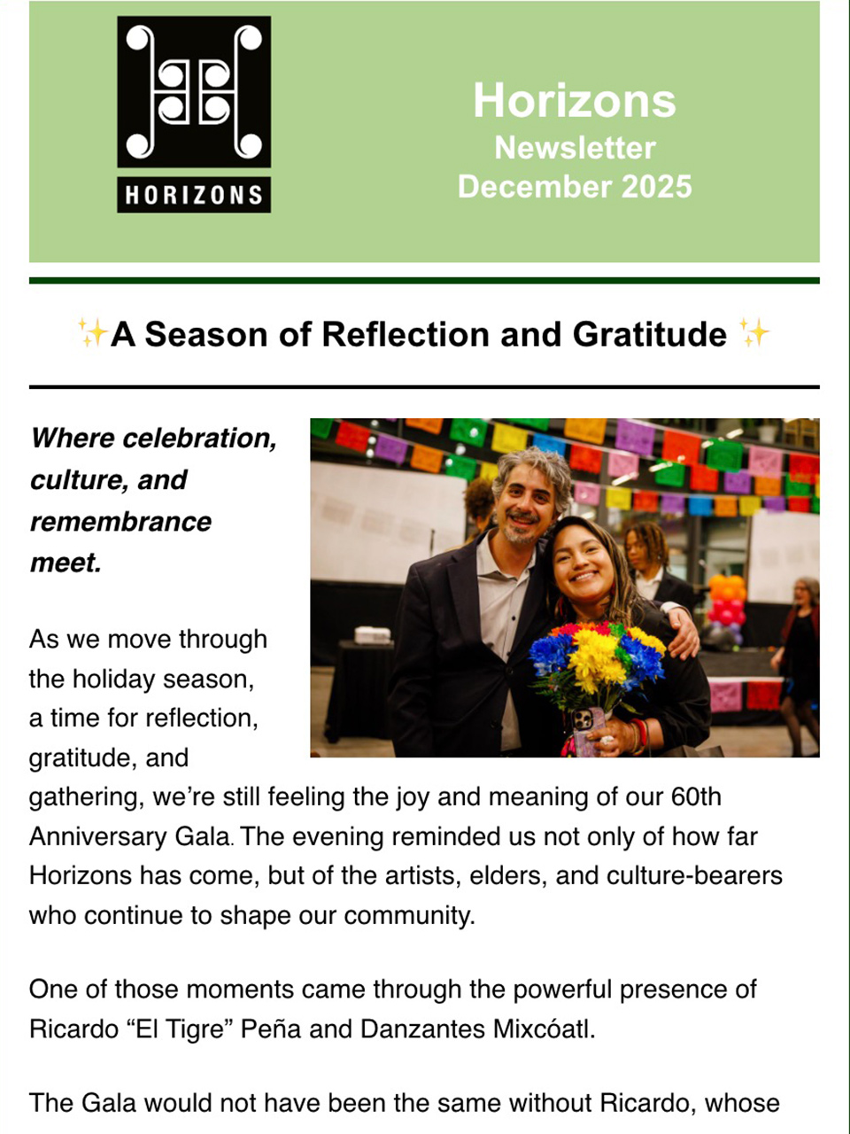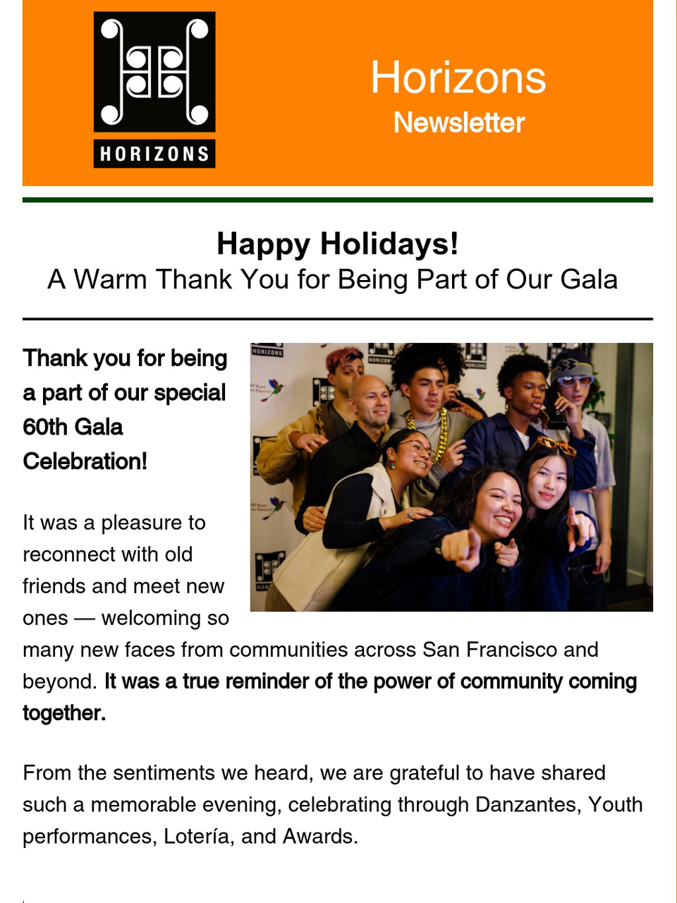 - Warm thank you and joyful recap of our 60th Gala Celebration