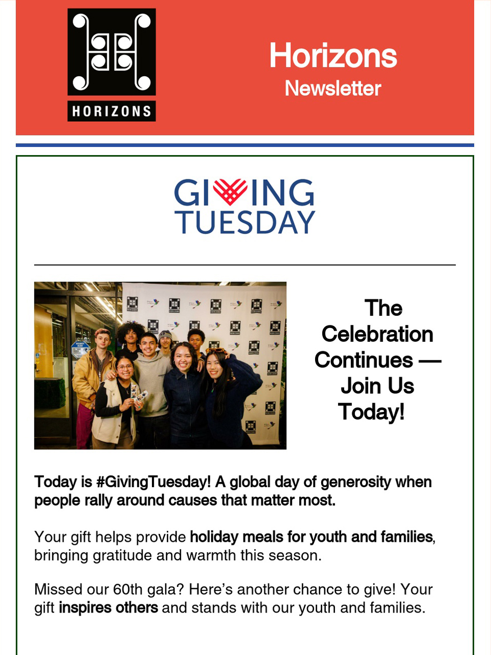 - Giving Tuesday Momentum – How your gift today supports youth and families during the holiday season